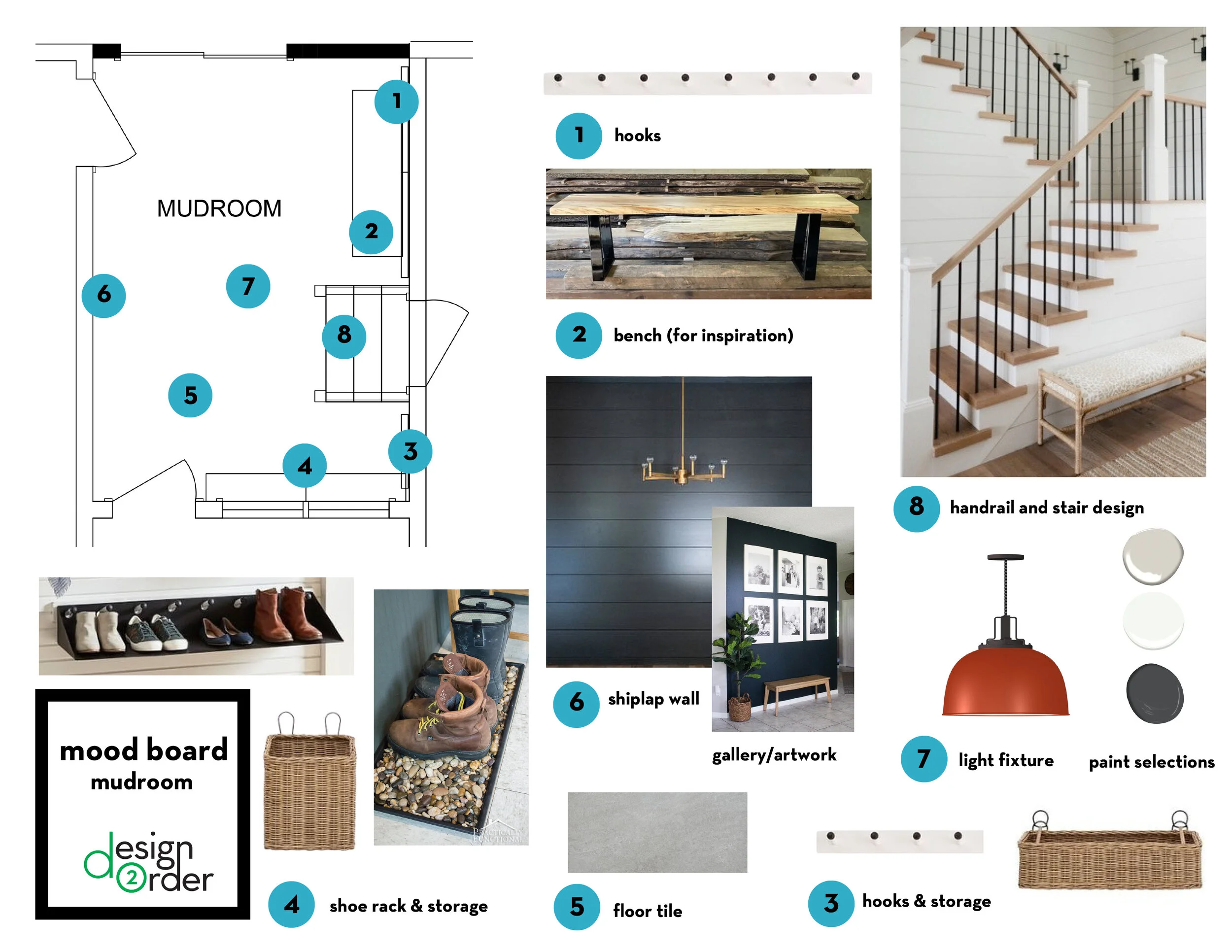We developed mood boards and process boards to capture the desired style and ‘feel’ of the space. We also planned for flexible storage, since the active family of four, played a variety of sports. The client was okay with belongings being seen, but wanted everything to have a dedicated home within the space.